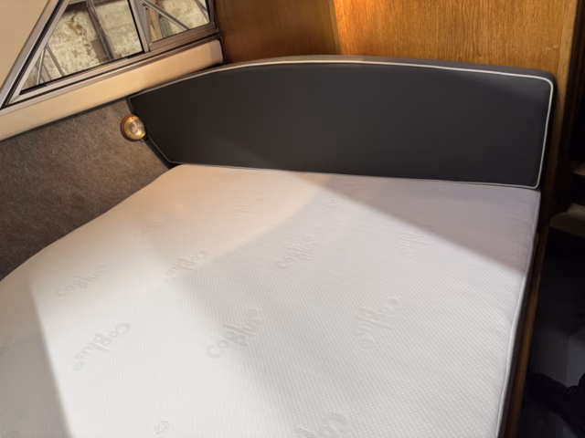 The sleeping experience on a boat is paramount. We custom-fabricated our luxury mattress for this Sheerline. The client opted for the Air-Flow Marine+ 3D Foam Core option, constructed with multiple layers of marine-grade foam, including a laser-cut core with foam springs, and a softer, conforming top layer for ultimate comfort. Crucially, we incorporated ventilation channels and used breathable materials to combat moisture build-up, a common issue in boat cabins. Every mattress was precisely shaped to fit the unique contours of the Sheerline’s berths, maximising usable space and ensuring a snug fit.