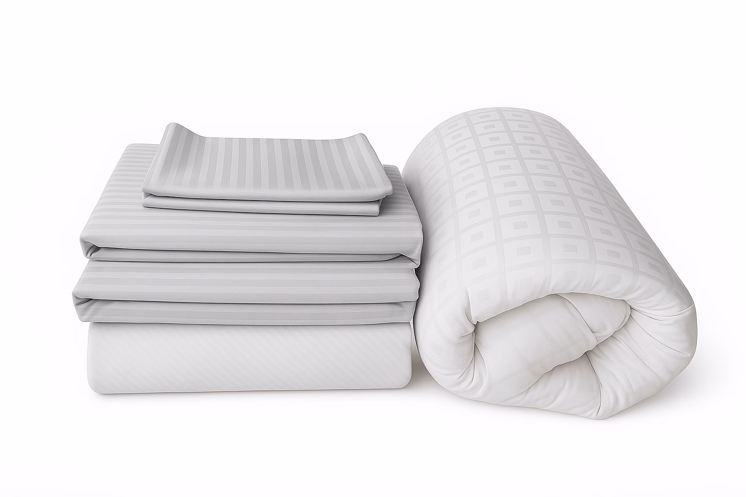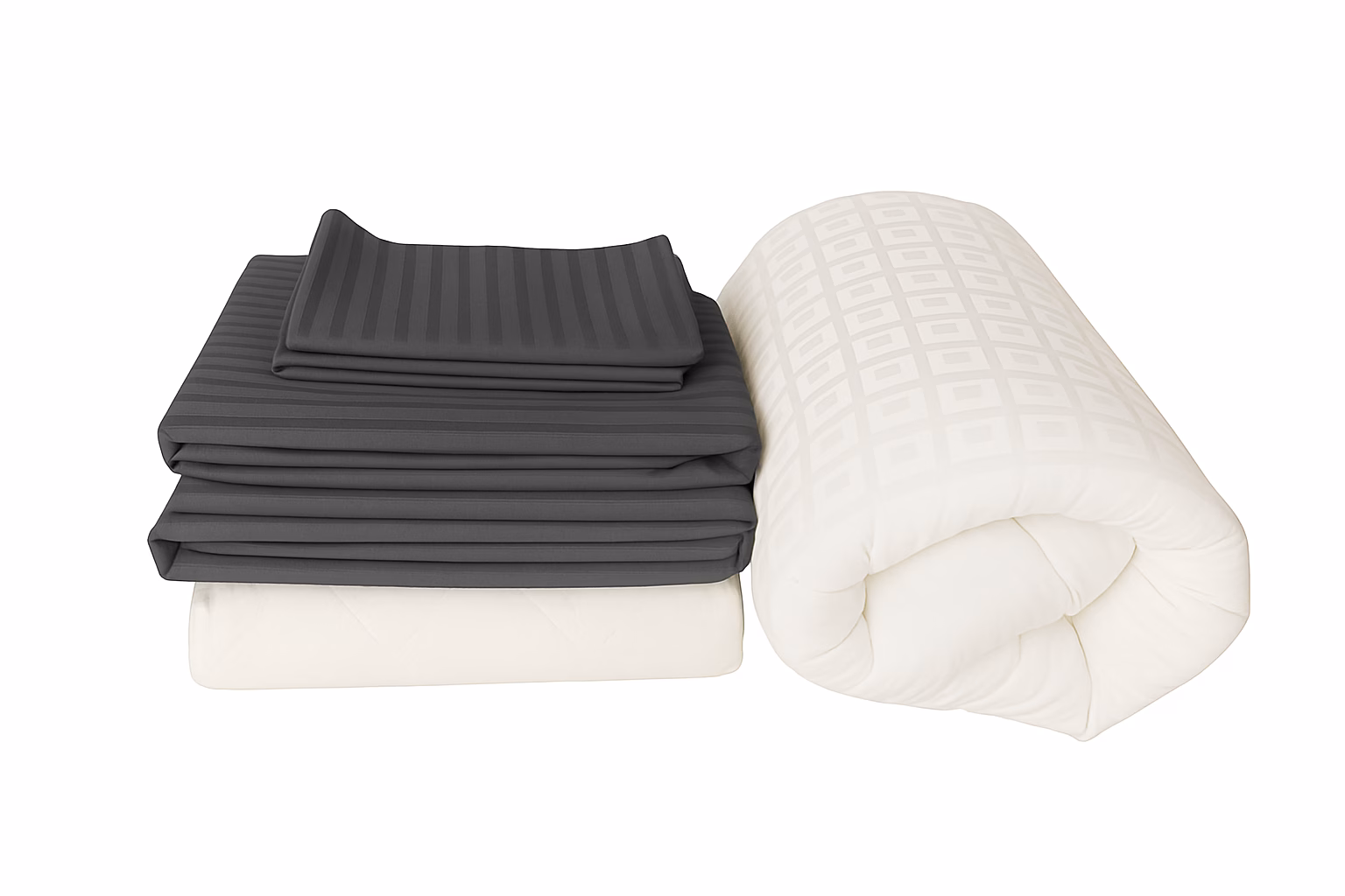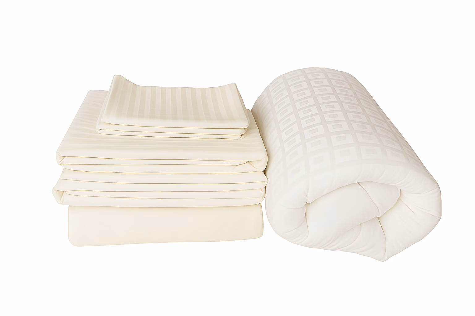 Our satin stripe fabric is 100% egyptian cotton, 540 thread count. Elegant and classic, giving your cabins that hotel-look and feel.